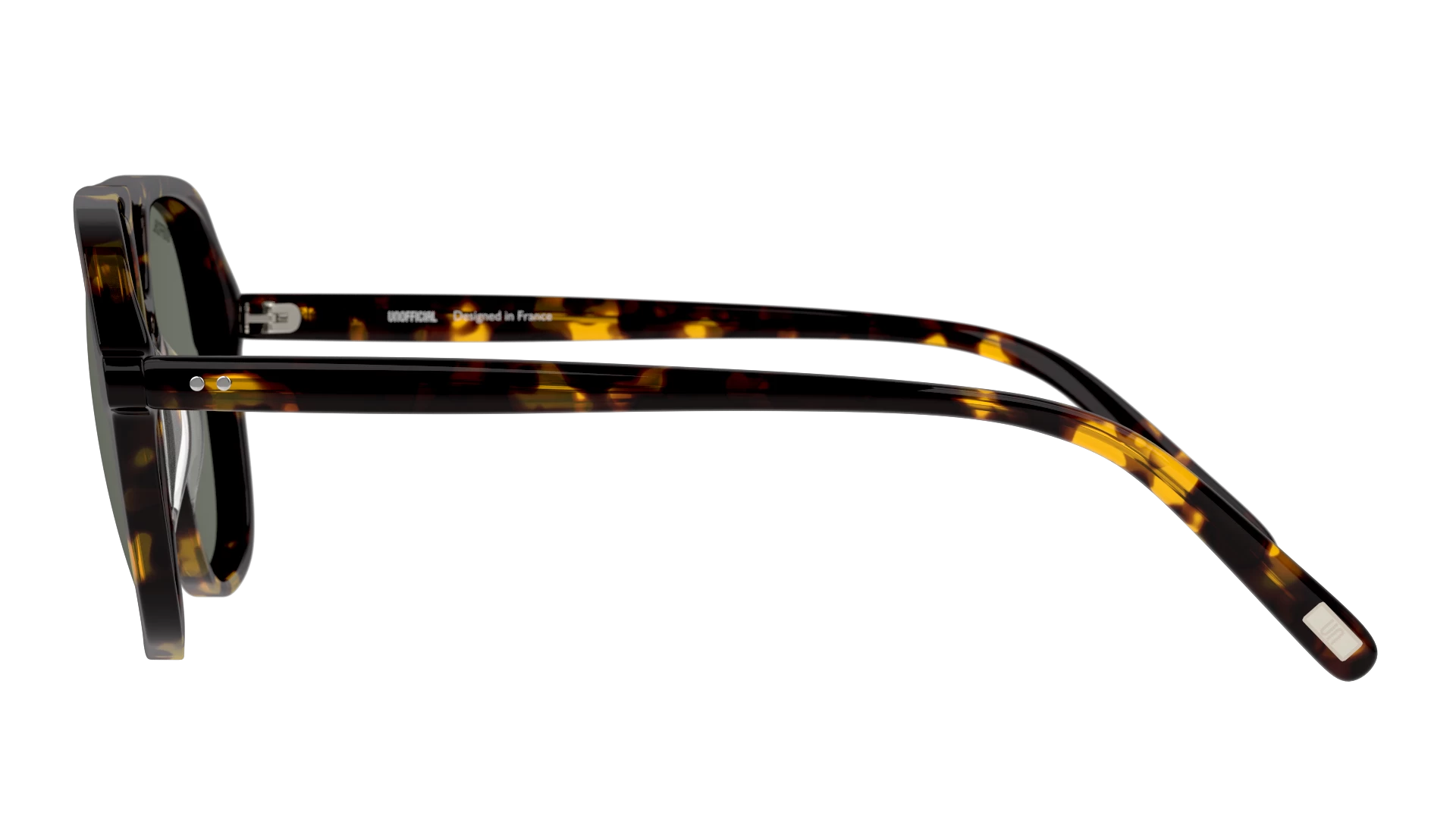 Nieuwe zonnebril nodig? Zoek niet verder! De Unoffic UNSM0014 HHE0 is namelijk onmisbaar in jouw collectie. Dit prachtige heren model is havana en is gemaakt van kunststof. De groene zonnebrilglazen hebben een kalmerend effect en remmen felle lichtschitteringen. De Unoffic UNSM0014 HHE0 is een piloten zonnebril. Dit past goed bij een ovale gezichtsvorm. Dit montuur valt klein.