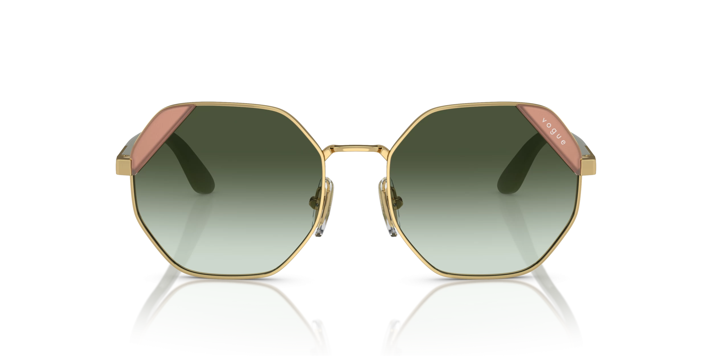Nieuwe zonnebril nodig? Zoek niet verder! De Vogue VO4268S 280/8E is namelijk onmisbaar in jouw collectie. Dit prachtige dames model is goud en is gemaakt van metaal. De groene zonnebrilglazen hebben een kalmerend effect en remmen felle lichtschitteringen. De Vogue VO4268S 280/8E heeft een hoekig montuur. Dit past goed bij een ronde of ovale gezichtsvorm. Dit montuur valt klein.